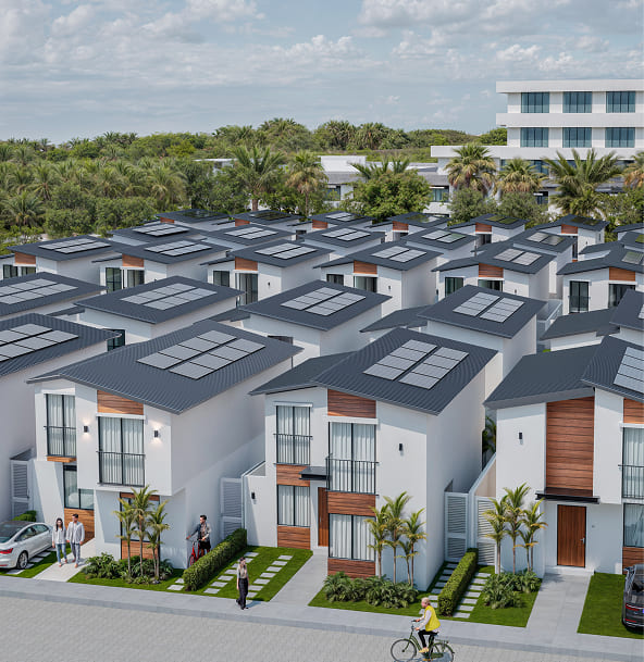 Un refugio residencial privado de 143 viviendas rodeado de áreas verdes, parques, zona BBQ y seguridad 24/7 para tu total tranquili-dad.