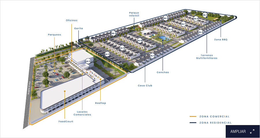 El nuevo referente urbanístico en el km 13 de la Vía Salitre, diseñado para quienes buscan reconectar con la naturaleza sin alejarse de la ciudad. En un extenso terreno de 4.8 hectáreas, el proyecto destaca por albergar la plaza comercial más grande del sector, brindando comodidad y servicios exclusivos a pocos pasos de tu hogar.